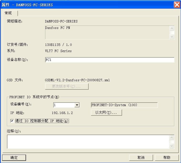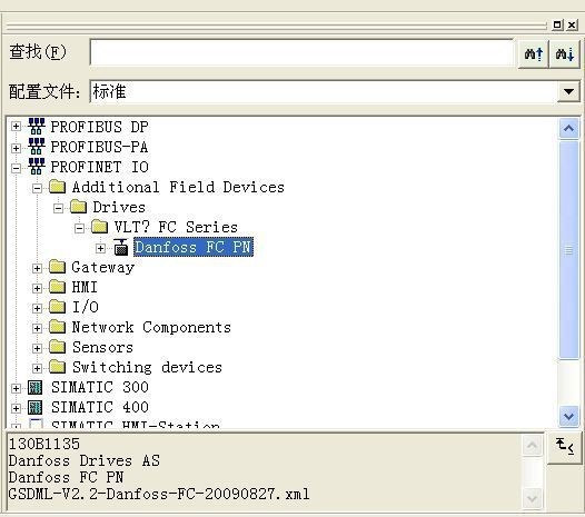 丹佛斯 FC300 系列變頻器 ProfiNet GSD 文件名為“GSDML-V2.2-Danfoss-FC-20090827. xml”(可從丹佛斯官網(wǎng)下載)。