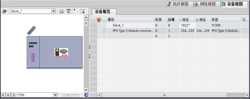 將變頻器 FC300 拖動(dòng)到 PROFIBUS_1 連接線處后,PLC 和變頻器連接在一起,F(xiàn)C300 顯 示為未分配。