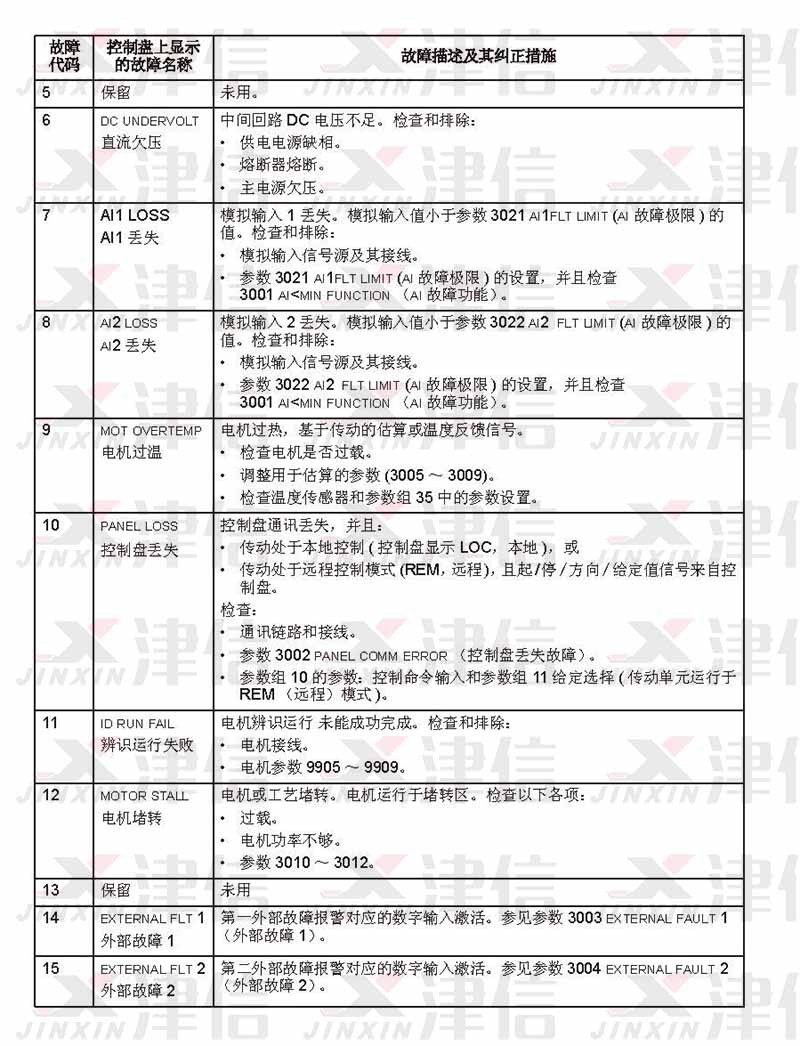 二、ABB ACS550 故障代碼F0005,6,7,8,9,10,11,12,13,14,15