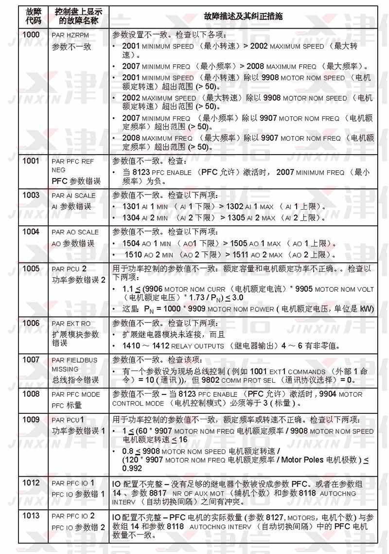 五、ABB ACS550 故障代碼F1000,1001,1002,1003,1004,1005,1006,1007,1008,1009,1010,1011,1012,1013