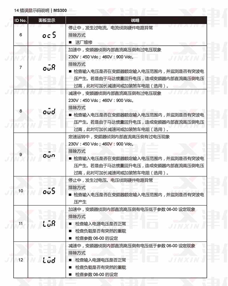 二、臺達MS300變頻器OCS,OUA,OUD,OUN,LUR,ous,lud故障代碼