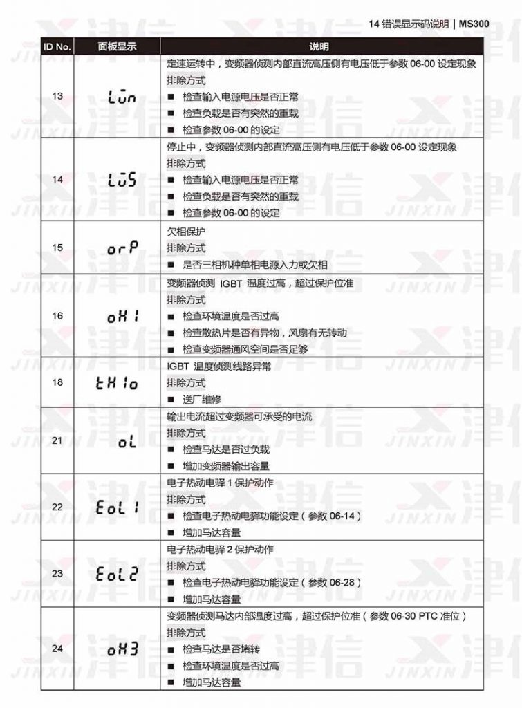三、臺達MS300變頻器lun,lus,th1o,ORP,OH1,OL,OH3,EOL1,EOL2故障代碼