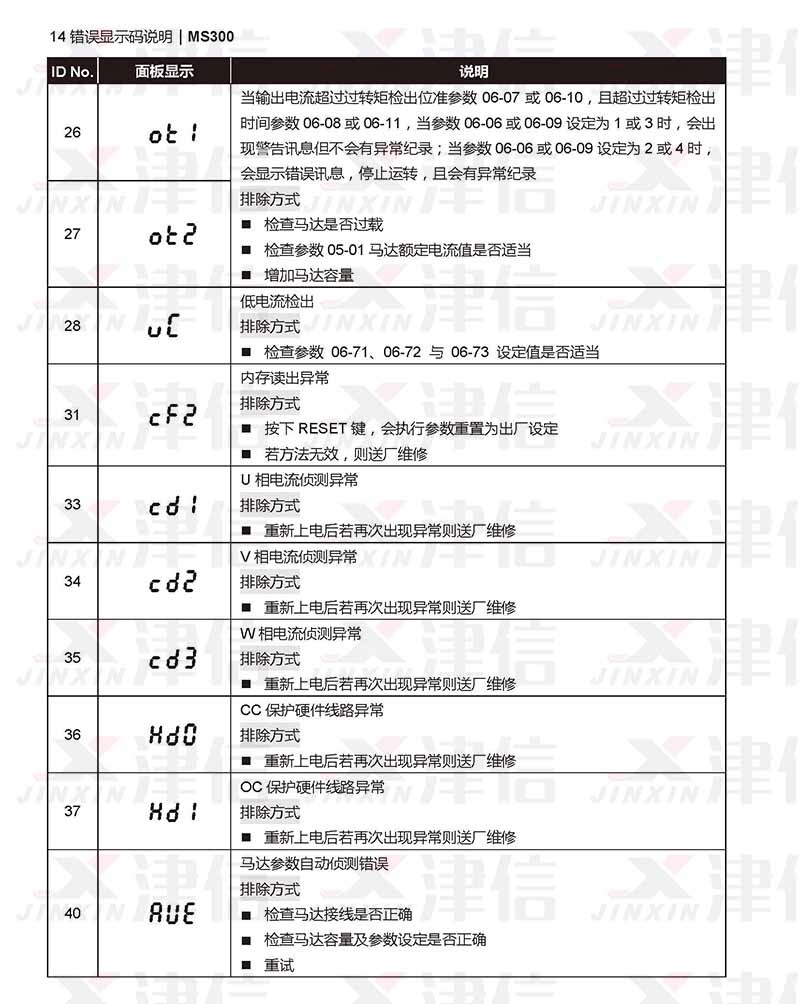 四、臺達MS300變頻器ot1,ot2,uc,cf2,cd1,cd2,cd3,hd0,,hd1,aue故障代碼