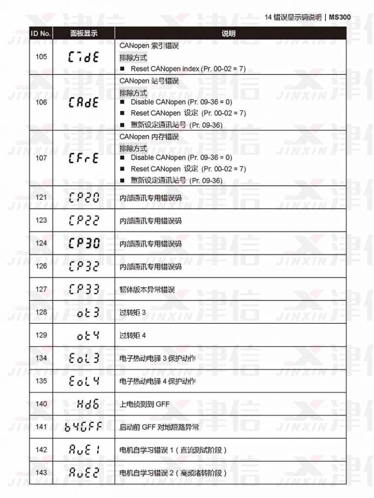 九、臺達MS300變頻器c7de,cade,cfre,CP20,cp22,cp30,cp32,cp33,ot3,ot4,EOL3,eol4,hd6,AUE1,aue2