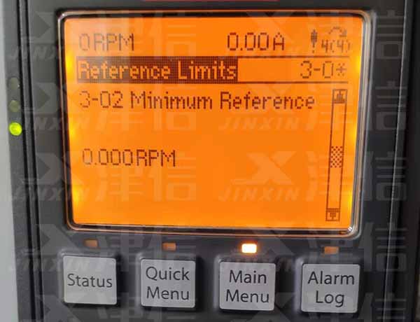 使用上下鍵選擇3-02,進(jìn)行最小頻率設(shè)置,此時(shí)的單位是RPM轉(zhuǎn)速