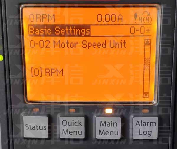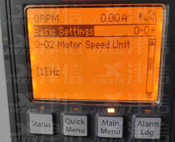 選擇0-02,選擇電機(jī)速度單位,默認(rèn)為選項(xiàng)[0]:RPM,[1]為Hz
