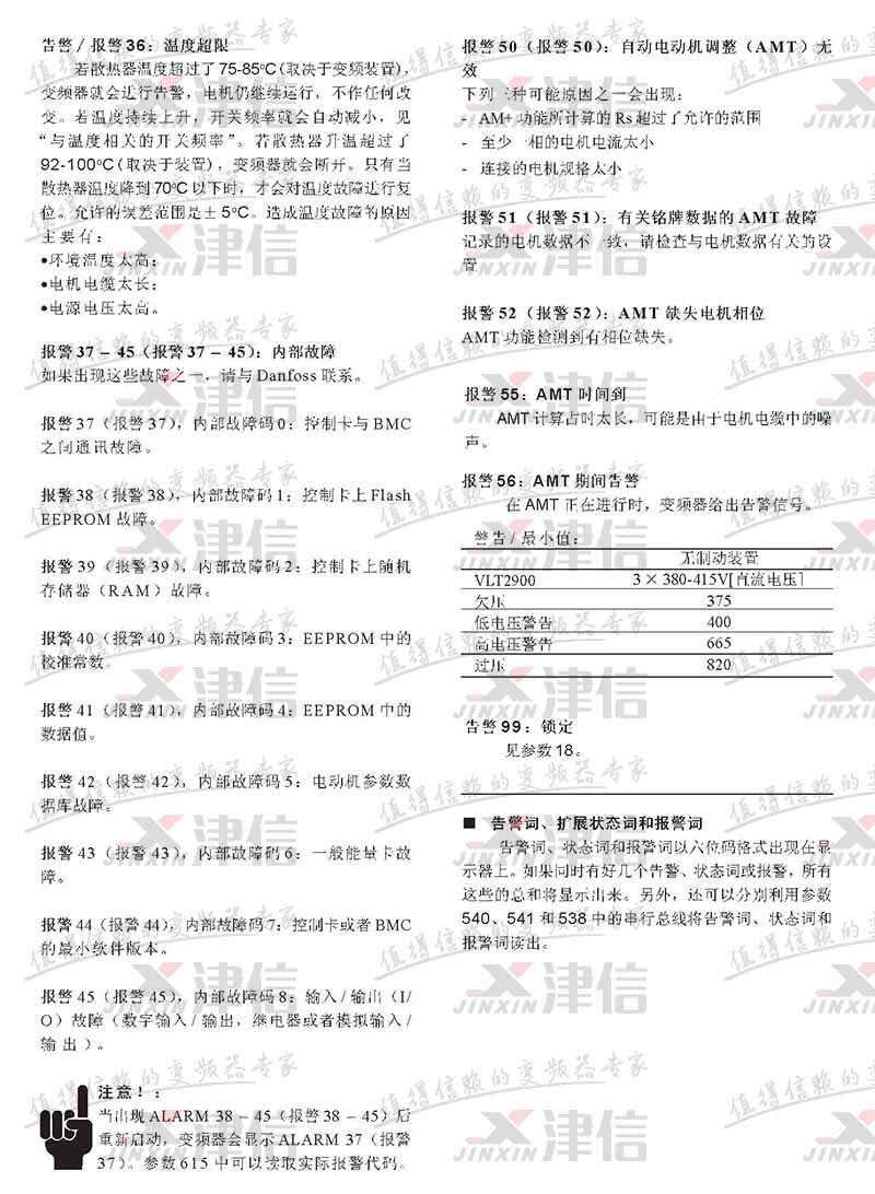 | 故障代碼 | 故障描述 | 警告 | 報警 | 跳閘鎖定 |