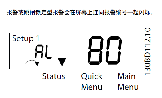 只有當變頻器的供電電壓缺失并且 14-10 主電源 故障 未設成 [0] 無功能 時,此警告/報警才有效。 |