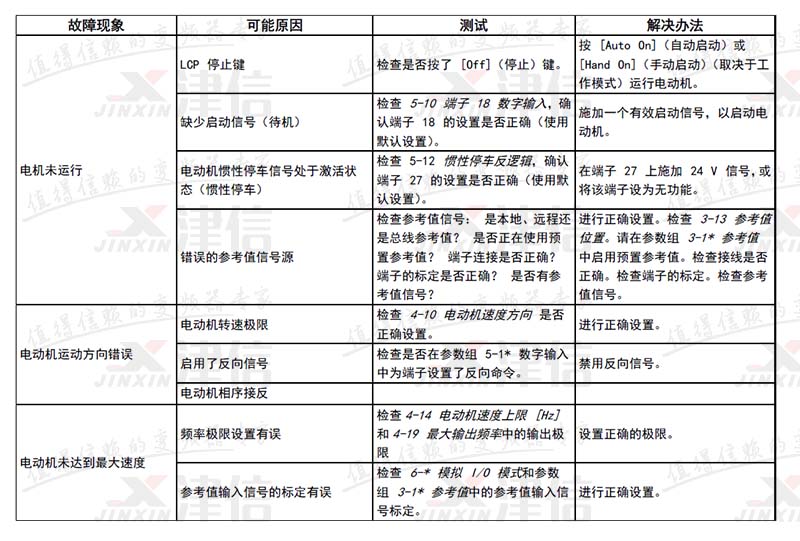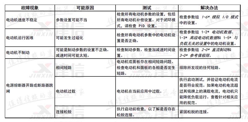 | 17 | 控制字超時 | X | X | 沒有信息傳送到變頻器。 | |