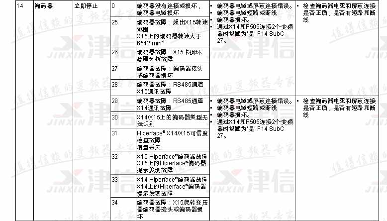 SEW變頻器故障代碼F17,F18,F19,F20,F21,F22,F23,F24,F25,F26,具體如下: