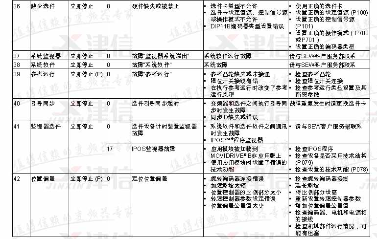 SEW變頻器故障代碼F36,F37,F38,F39,F40,F41,F42,具體如下: