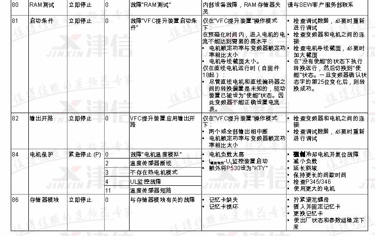 SEW變頻器故障代碼F80,F81,F82,F84,F86,具體如下:
