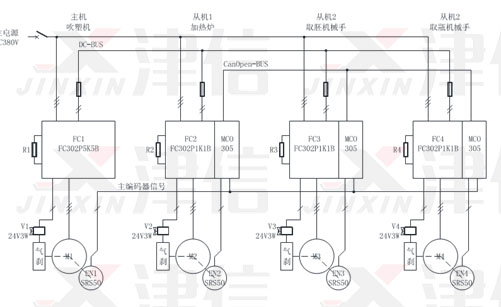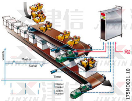 丹佛斯FC300高性能驅(qū)動器加上新一代MCO305高速運動專用控制器,可實現(xiàn)定位控制功能。電機可以選用異步或同步伺服電機。支持各種各樣的電機反饋裝置,從增量編碼器、絕對位置編碼器一直到旋轉(zhuǎn)變壓器。針對丹佛斯MCO305同步控制功能,上海津信變頻器有限公司為客戶在食品飲料行業(yè)吹瓶機上進行了技術(shù)應(yīng)用。