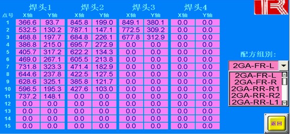 因設(shè)備所焊接的門(mén)板多達(dá)十幾種,而每個(gè)門(mén)板的焊接孔位置是不一樣的,所以需要使用配方功能,來(lái)實(shí)現(xiàn)同一臺(tái)設(shè)備焊接不同門(mén)板。設(shè)備配方所包含的功能如下: